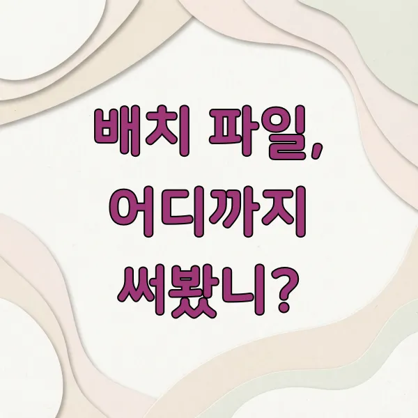 이 정도면 배치 파일이 무엇이고 어떻게 활용할 수 있는지 대충 감이 오시죠? 저는 개인적으로 매일 아침 컴퓨터를 켜면 자동으로 실행되는 배치 파일을 만들어두고 사용하고 있어요. 덕분에 이것저것 켜는 시간을 절약할 수 있어서 정말 편하답니다. 여러분도 오늘부터 단순 반복 작업은 배치 파일에게 맡기고 좀 더 효율적인 컴퓨터 생활을 시작해보는 건 어떨까요?